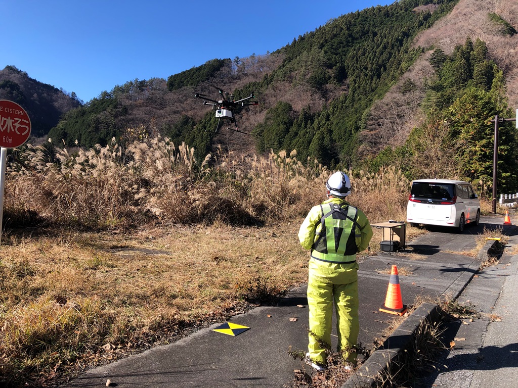 計測範囲を見渡せる場所を確保して やっと飛行作業となります。