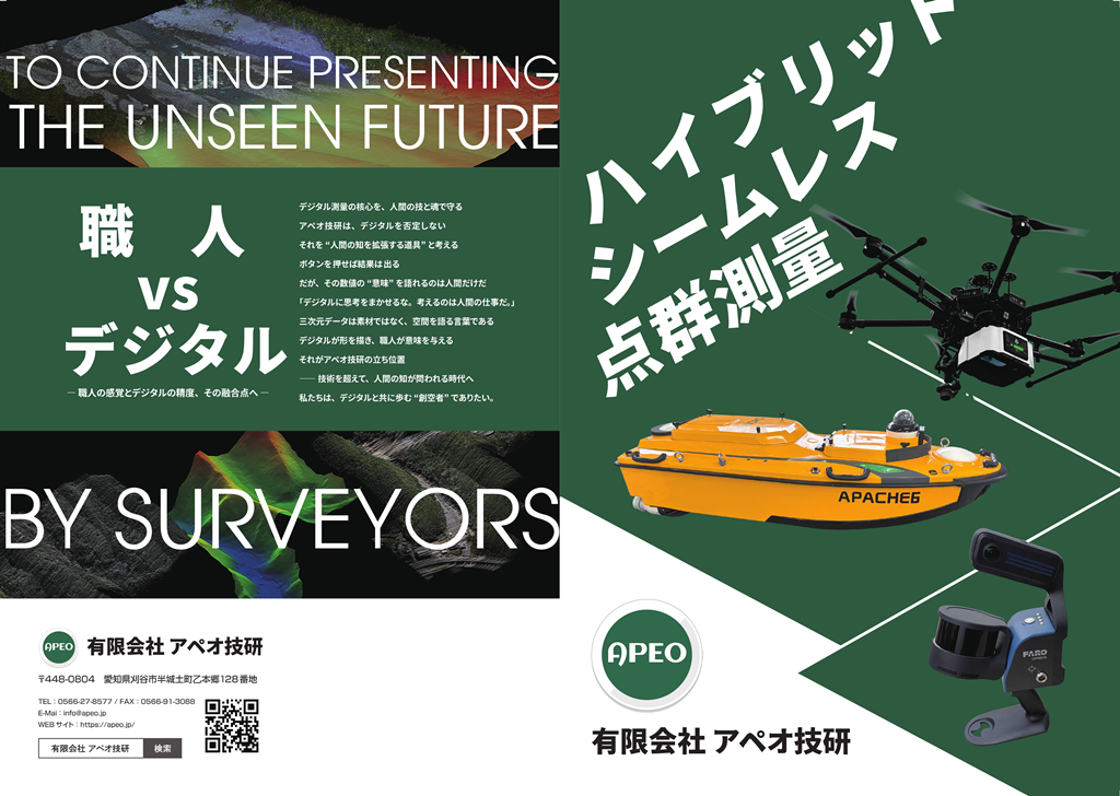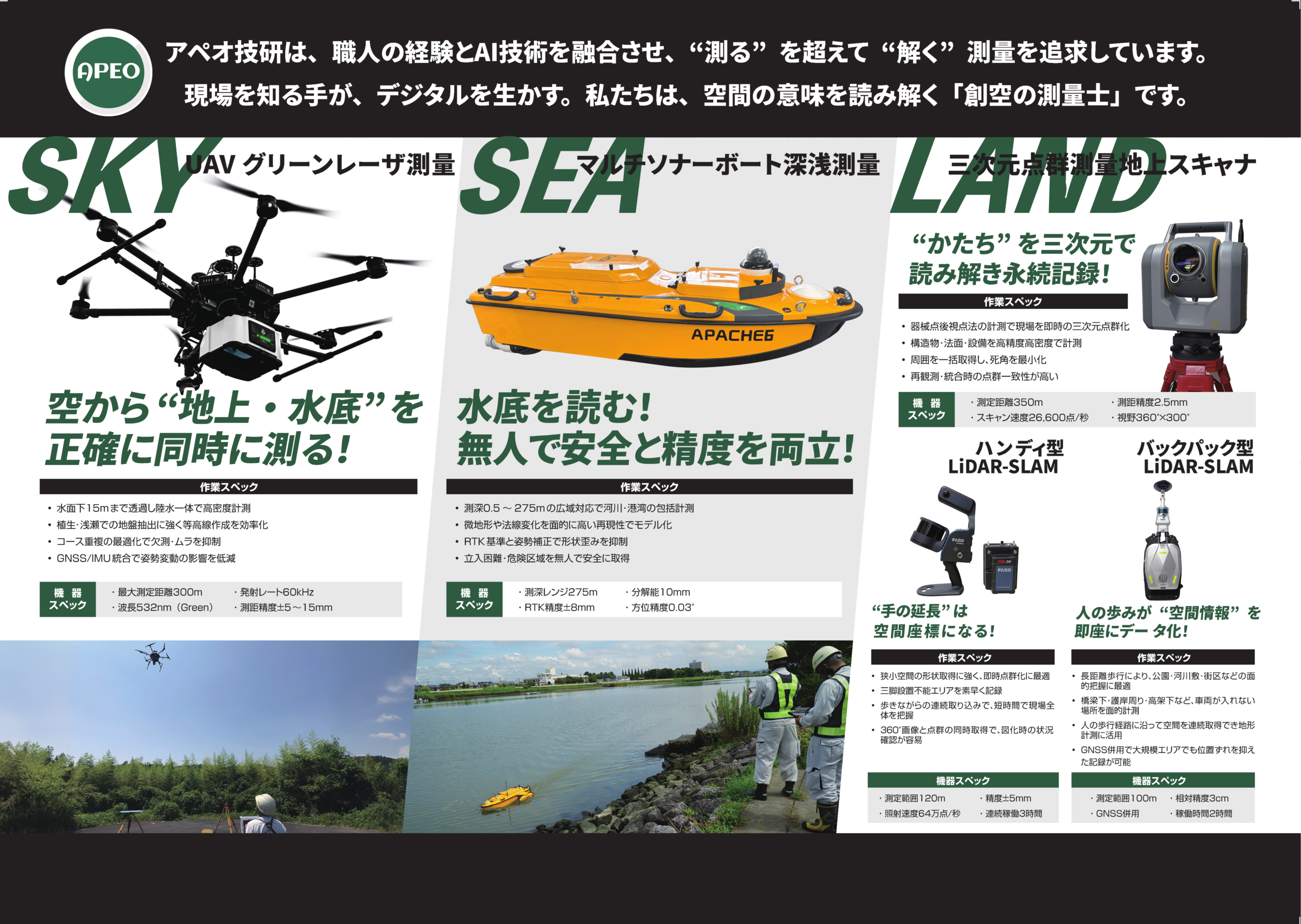 アペオ技研mogeです。アペオリーフレット、中面のご紹介です。 この中面をよく見て頂くとと「機械のカタログ」ではないな?と感じていただけるのではと。空・水・地上を分けて書いてあるけど、実際にやってるの…