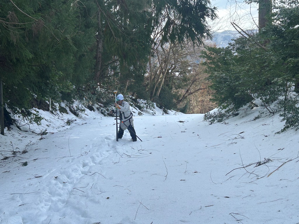 アペオ技研mogeです。写真は、昨年1月の石川県での作業風景です。 一昨年にUAVレーザで三次元化した平面図について、成果提出後に「補備測量」として単点や構造物を 従来法でより詳細に表記してほしい、と…